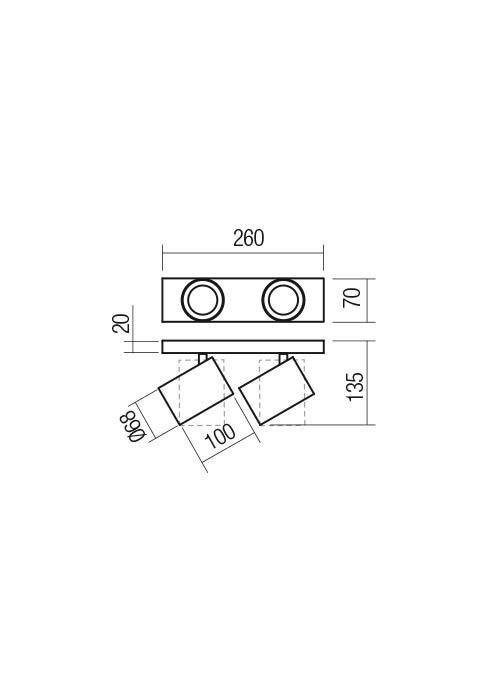 Orientovatelná nástěnná interiérová svítilna, kovová a extrudovaná hliníková konstrukce, elektrostaticky lakovaná v matné černé barvě, vybavené vypínačem.
