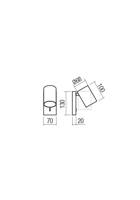 Nastavitelný vnitřní miniprojektor, montáž na strop nebo na stěnu, pro dvě LED žárovky PAR16, GU10. Kryt vyroben z extrudovaného hliníku, matná zlatá povrchová úprava zvenčí s matnou černou zevnitř.