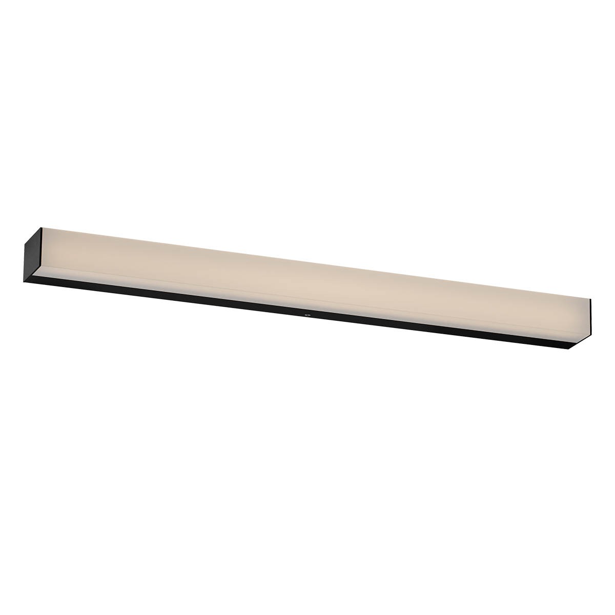 Interiérová nástěnná lampa chráněná před vlhkostí, vybavená SMD LED diodami, kovová konstrukce v matné černé barvě s opálovým polykarbonátem.