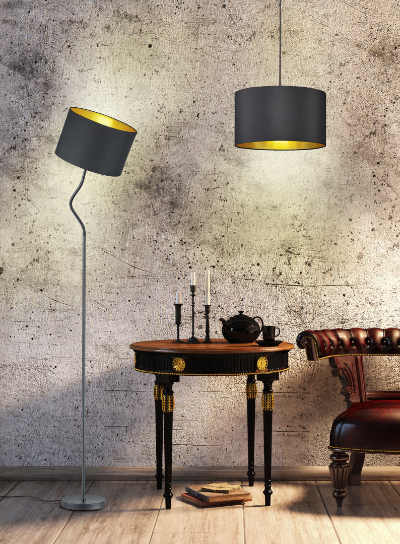 Materiál kov, černá mat, černá mat (textilní stínidlo)