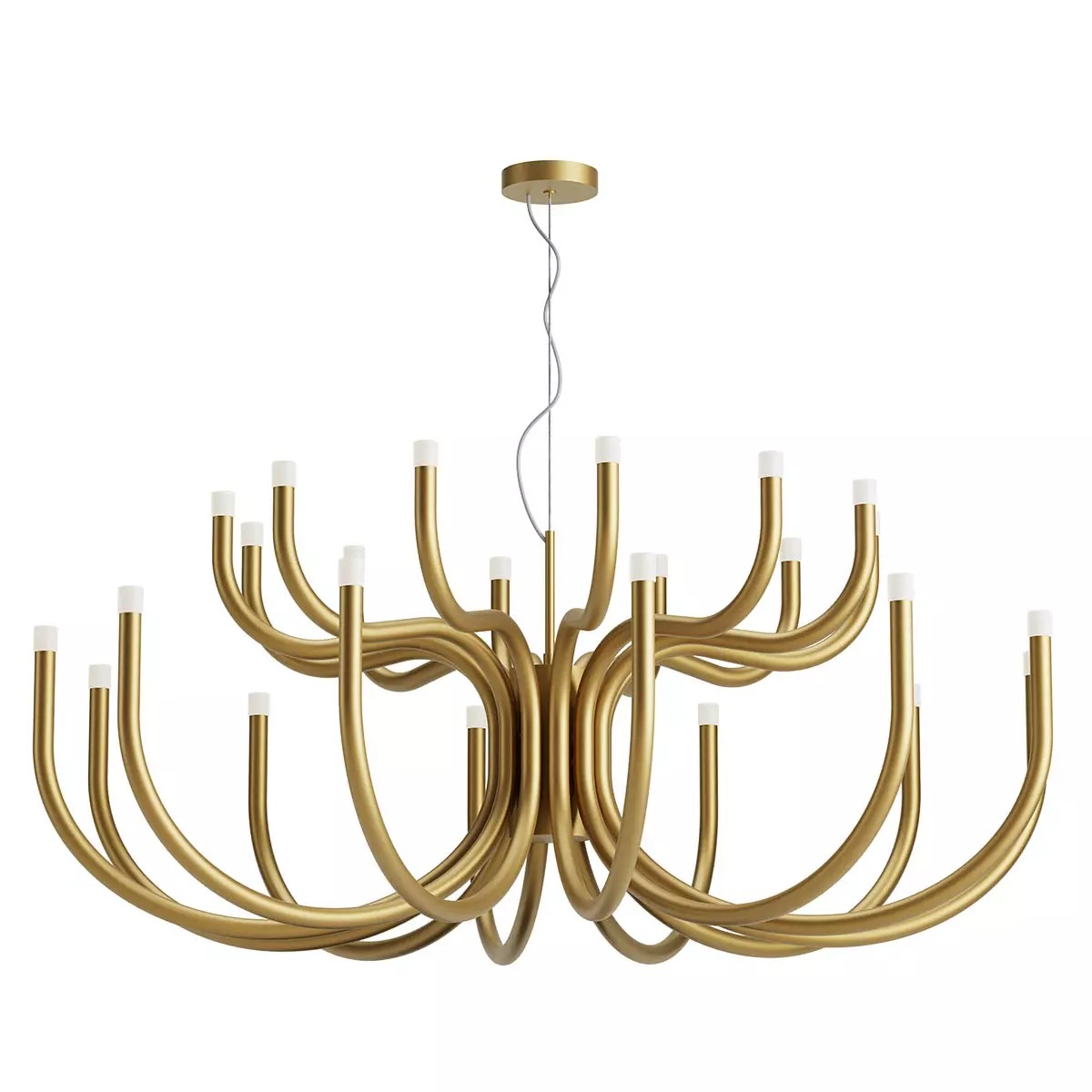 Interiérové závěsné svítidlo, vybavené SMD LED diodami, kovová a hliníková konstrukce lakovaná v matné zlaté barvě, saténové akrylátové difuzory.