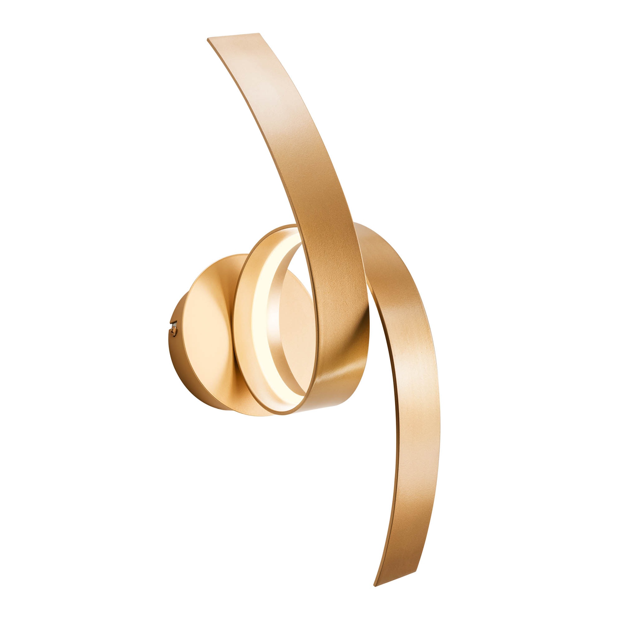 Interiérové nástěnné svítidlo, vybavené SMD LED diodami, kovová a hliníková konstrukce v matné zlaté, bílý difuzor z PVC.
