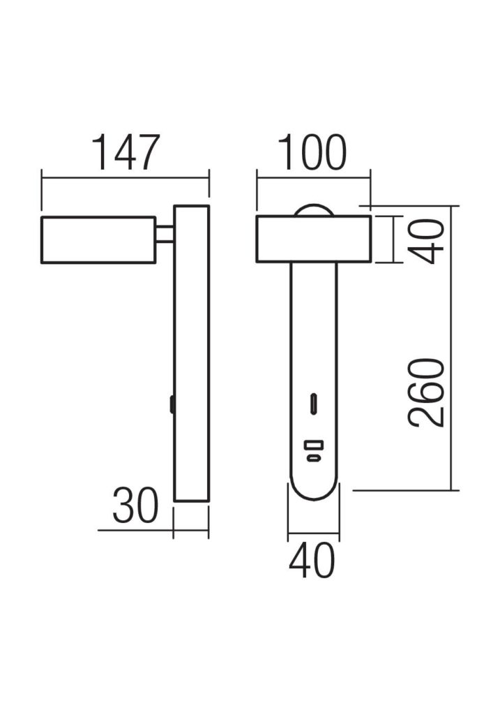 Nástěnné interiérové svítidlo, vybavené LED diodami SMD, kovová a hliníková konstrukce, lakované matnou bílou barvou, skleněný saténový opálově bílý difuzor, vybavené nabíjecím portem USB a vypínačem.