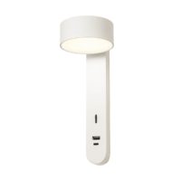 Nástěnné interiérové svítidlo, vybavené LED diodami SMD, kovová a hliníková konstrukce, lakované matnou bílou barvou, skleněný saténový opálově bílý difuzor, vybavené nabíjecím portem USB a vypínačem.