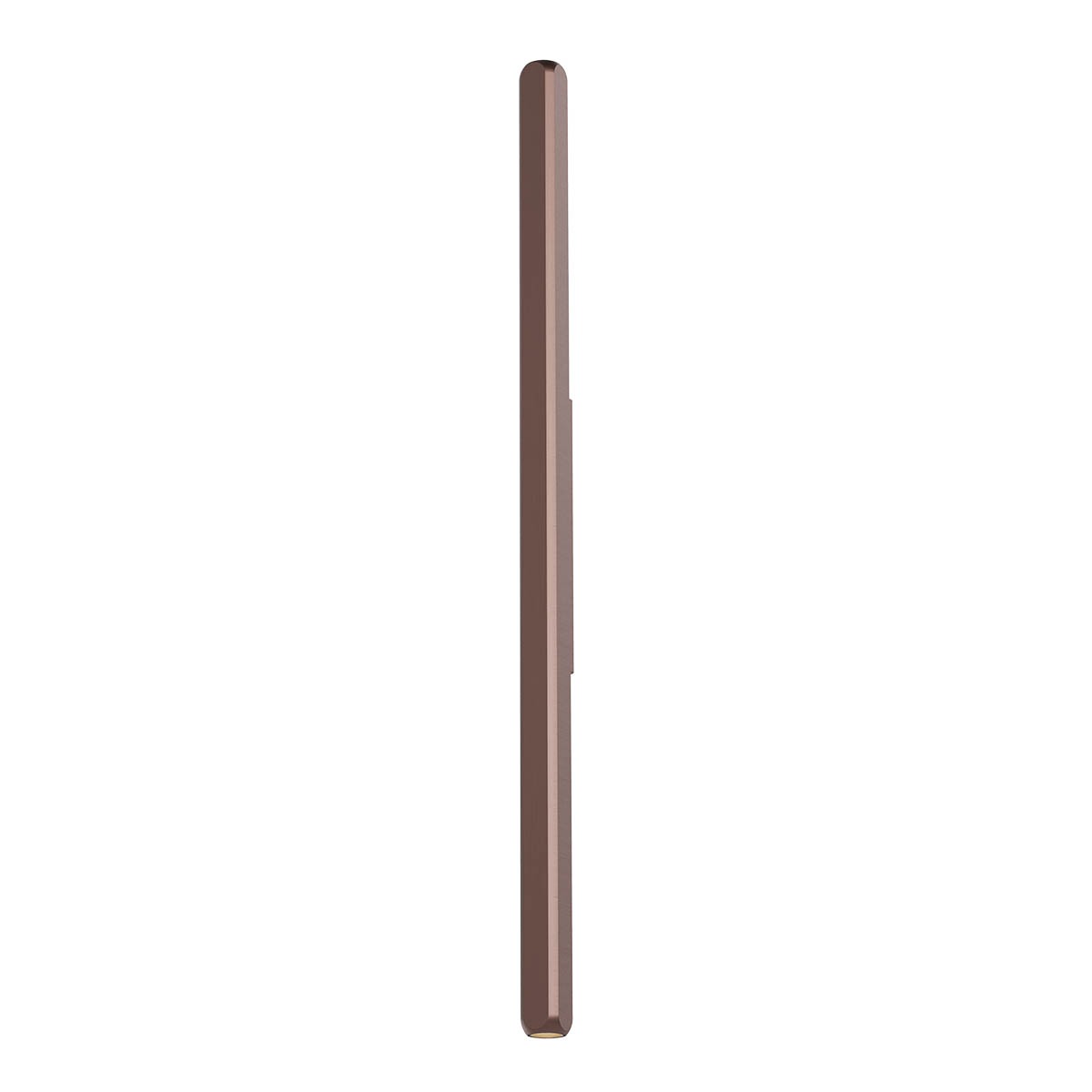 Nástěnné interiérové svítidlo vybavené COB LED diodami, kovová a extrudovaná hliníková konstrukce s broušenou hnědou povrchovou úpravou, difuzor z průhledného skla.
