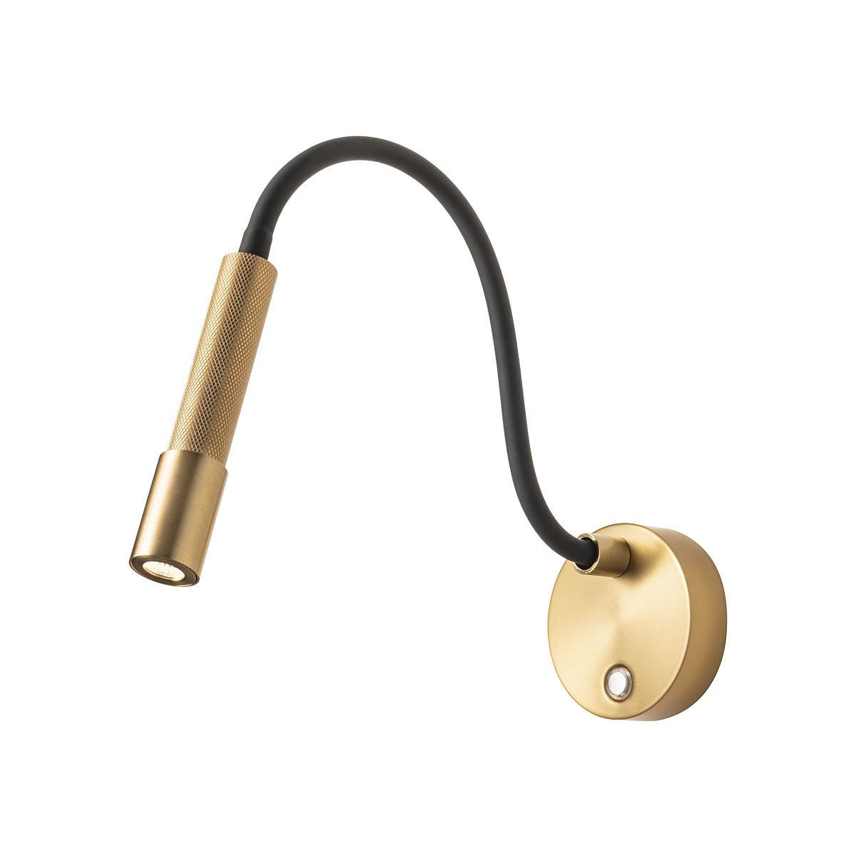 Nástěnné interiérové svítidlo vybavené LED diodami COB, konstrukce z kovu a hliníku s povrchovou úpravou v barvě starého zlata, s průhledným akrylovým difuzorem. Vybaveno vypínačem ON/OFF a stmívačem s možností nastavení intentzity světla.