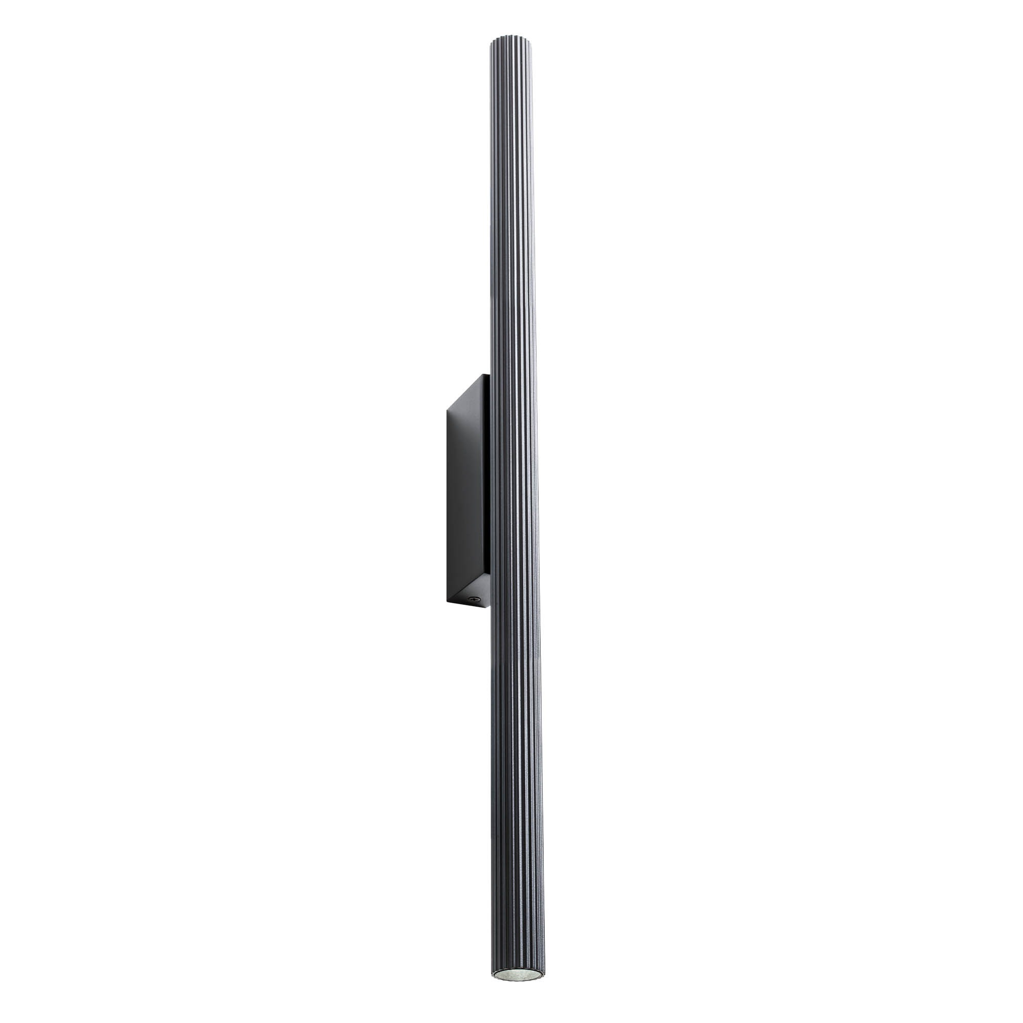Interiérové nástěnné LED stmívatelné svítidlo vyrobené z kovu lakovaného v barvě matná černá, průhledný polykarbonátový difuzor.