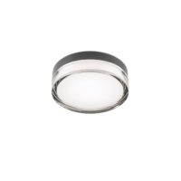 Stropní svítidlo do interiéru, chráněno proti vlhkosti, vybaveno SMD LED diodami, s možností volby teploty barvy světla, matná černá lakovaná hliníková konstrukce, PMMA difuzor zevnitř lakovaný bílou barvou a průhledný zvenčí.