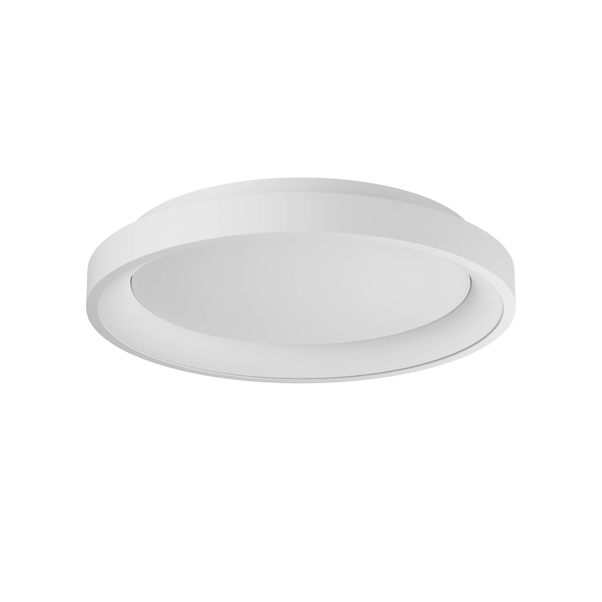 Stropní interiérové svítidlo, se 3 krokovým stmíváním vypínačem, vybavené SMD LED diodami, konstrukce z hliníku a kovu lakované v pískové bílé barvě, difuzor z opálově bílého akrylu.