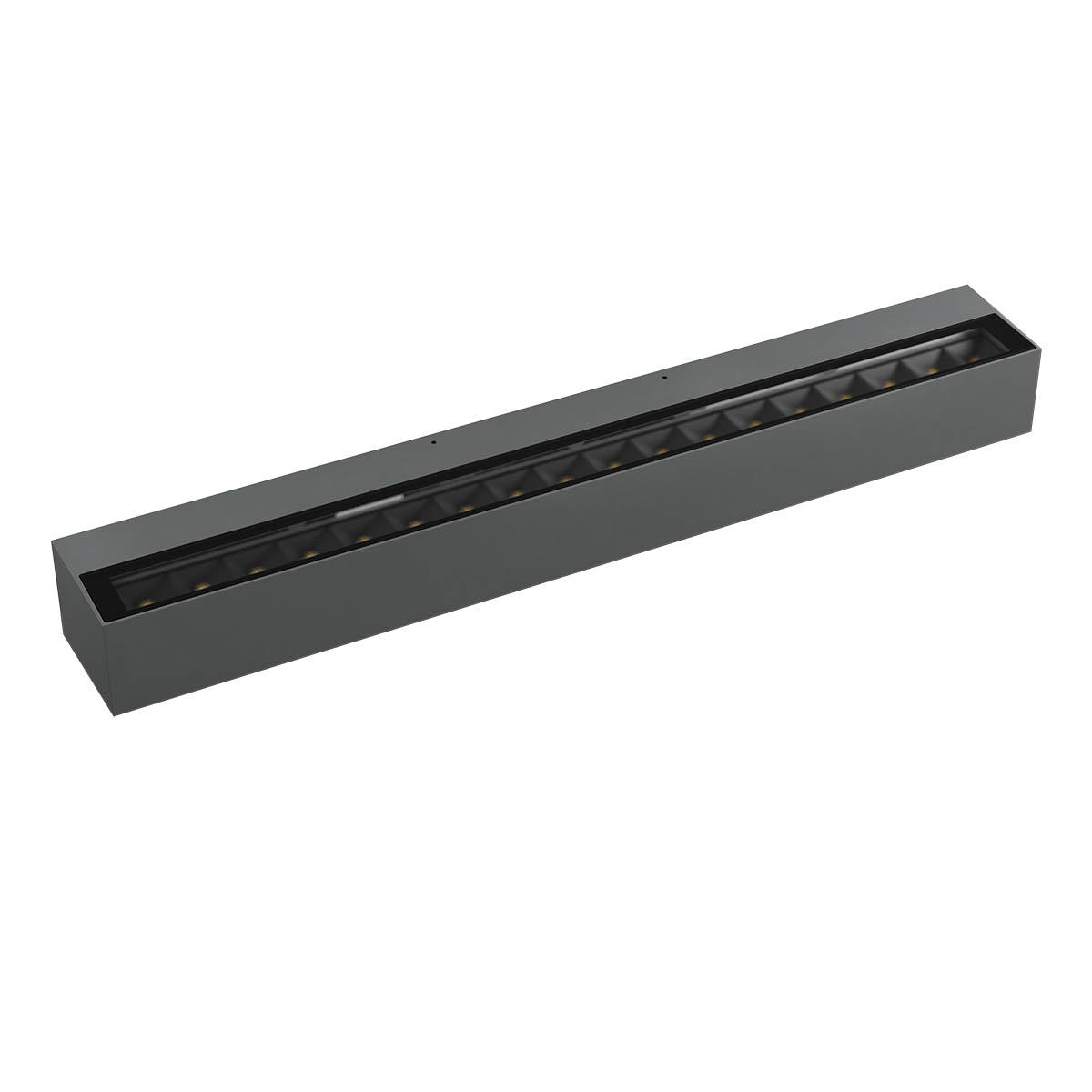 Exteriérové nástěnné svítidlo vybavené SMD LED diodami s nepřímým vyzařováním světla, kryt z hliníkového odlitku, elektrostaticky lakovaný v tmavě šedé barvě, polykarbonátové reflektory, prizmatické difuzory z tvrzeného skla.