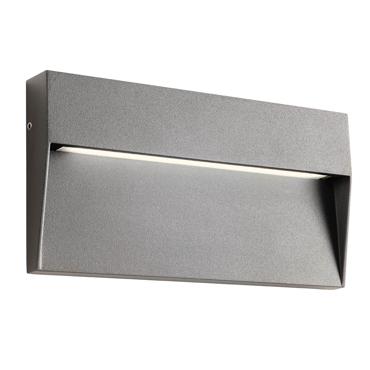 Exteriérová nástěnná svítidla vybavená SMD LED, těleso z tlakově litého hliníku elektostaticky lakované v tmavě šedé barvě, průhledný polykarbonátový difuzor.