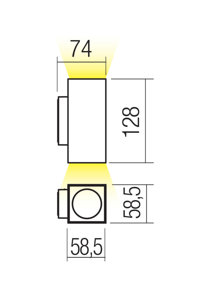 Exteriérové nástěnné svítidlo vybavené LED diodami COB. Konstrukce z hliníku lakovaná v pískově bílé barvě, průhledné skleněné difuzory.