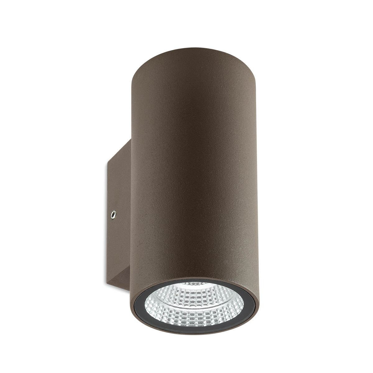 Exteriérové nástěnné svítidlo vybavené LED diodami COB. Konstrukce z hliníku lakovaná v tmavě hnědé barvě, průhledné skleněné difuzory.