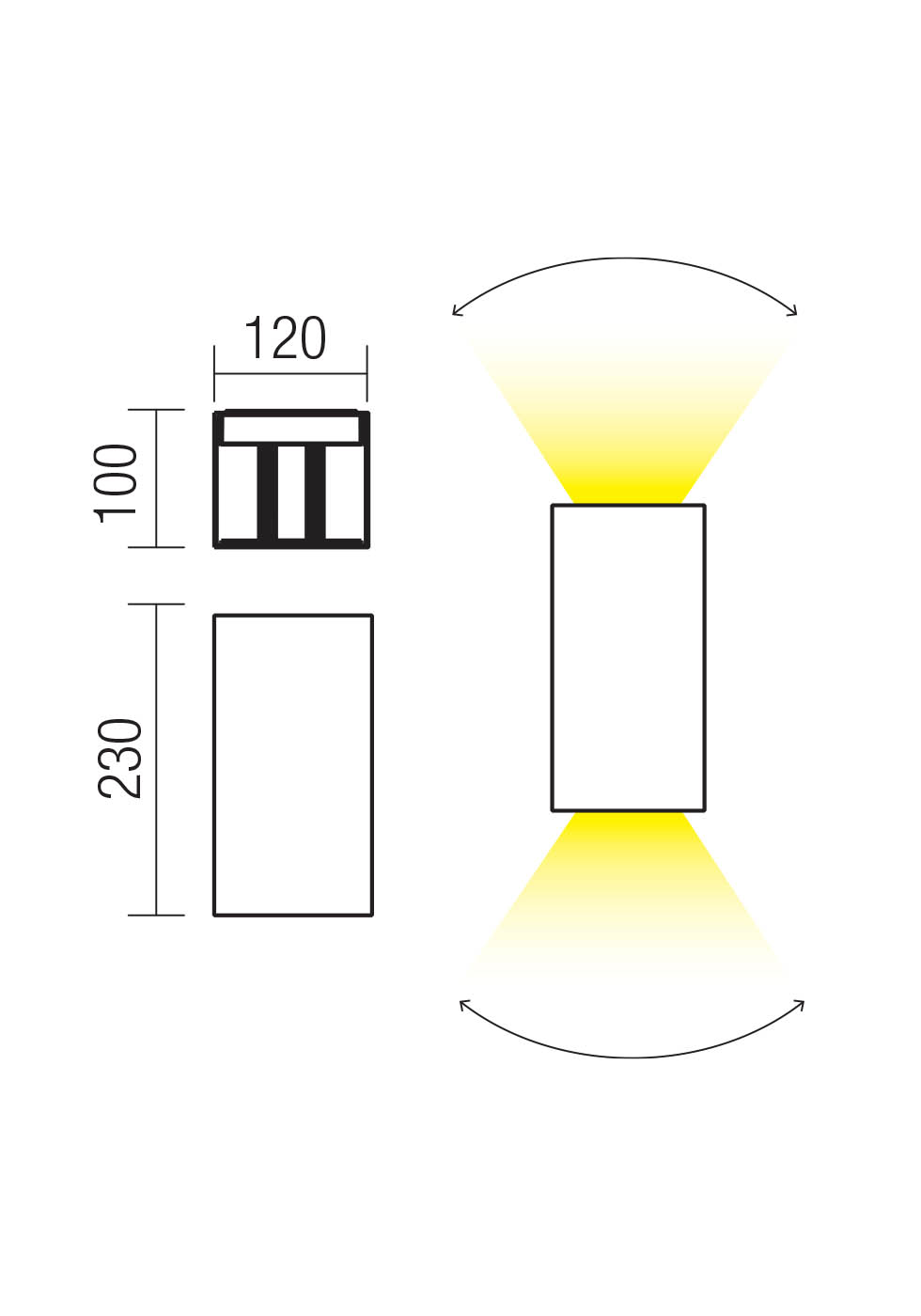 Venkovní nástěnné svítidlo, obsahuje POWER LED s přímým nebo nepřímým svícením a nastavitelným úhlem. Hliníková slitina v tmavě šedé barvě, čirý skleněný difuzor.