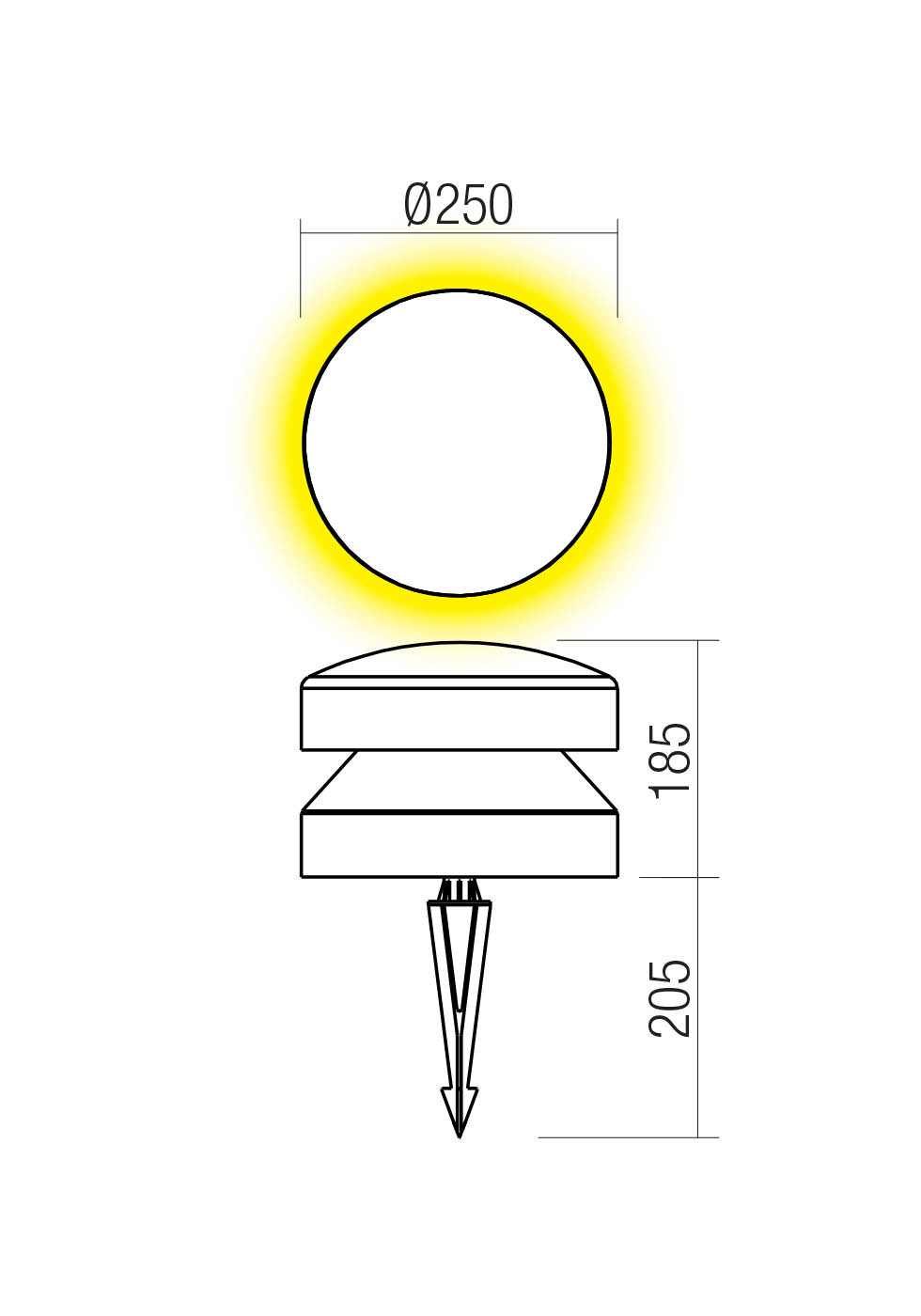 Exteriérové sloupkové svítidlo s SMD LED. Konstrukce z betonu ve slonovinové barvě. Hliníková část 5083 odolá vůči soli, komponenty a šrouby jsou z nerezavějící oceli AISI 316. Difuzor ze saténově bílého skla. Dodává se s plastovým zápichem pro instalaci do země.