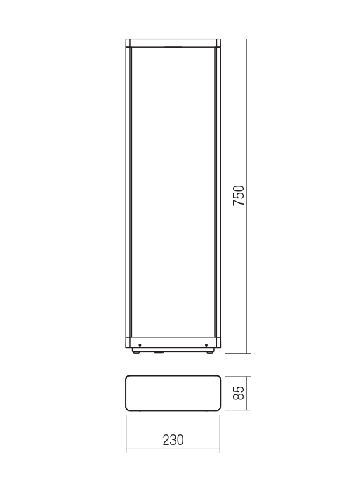 Exteriérový sloupek s nepřímou distribucí světla, vybavený COB LED diodami, tělo z tlakově litého hliníku, elektrostaticky lakované v tmavě šedé barvě, průhledný difuzor z tvrzeného skla.