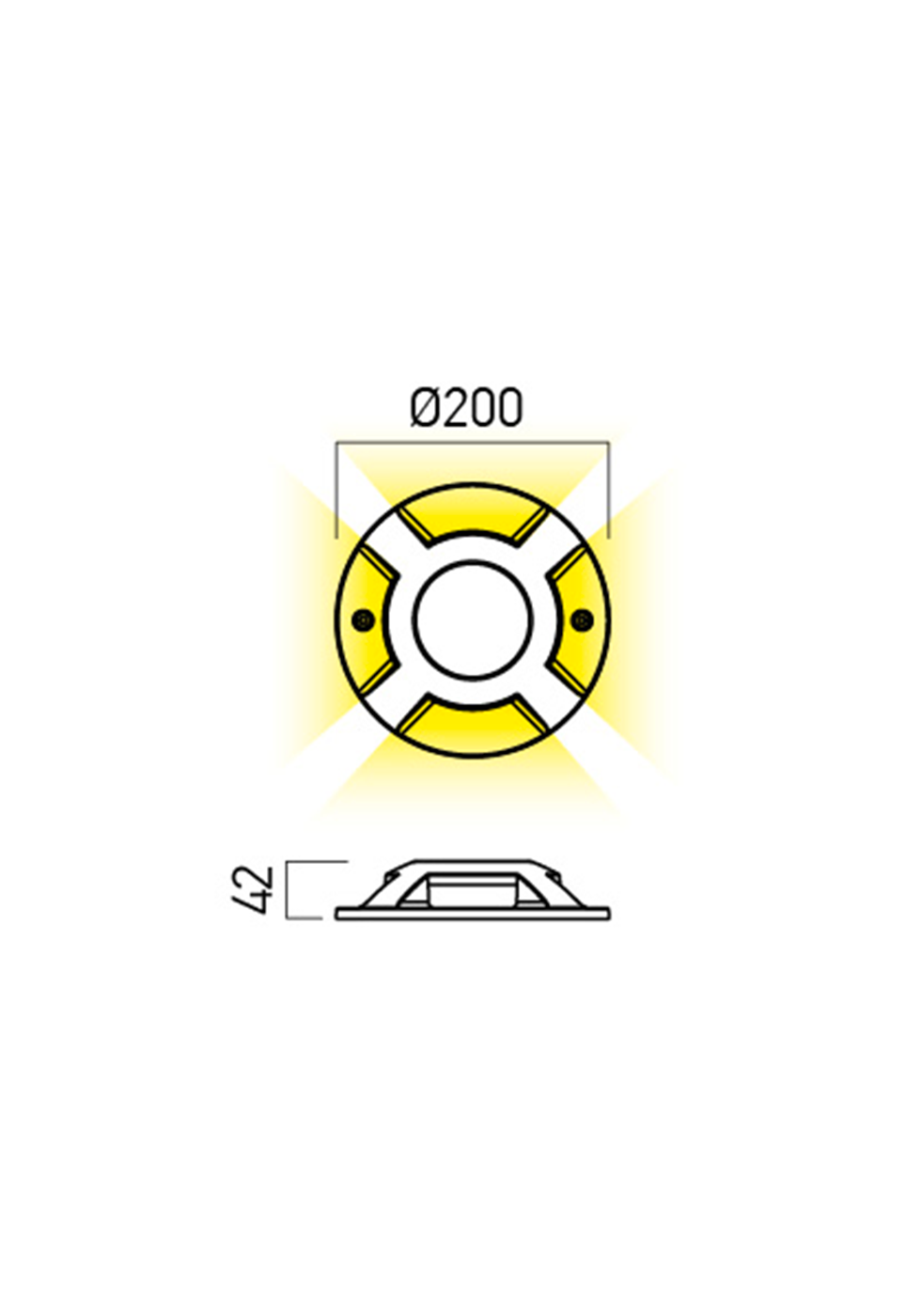 Chodníková LED svítilna, konstrukce vyrobená hliníku, součástí svítidla je i silikonové těsnění a napáječ. Svítilna je konstruována na zátěž do 500kg.