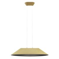 Interiérové závěsné svítidlo vybavené SMD LED diodami, hliníková a kovová konstrukce lakovaná matnou černou barvou, difuzor vyrobený ze zvuk pohlcující plsti z polyethylentereftalátu, z vnější strany olivově zelená az vnitřní strany černá. Polyethylentereftalát se získává z recyklovaných plastových lahví, ze kterých se vyrábějí pelety, které se pak vytlačují na tenká a měkká vlákna. Vrstvy těchto vláken se pak slisují a vytvoří plst pohlcující zvuk.