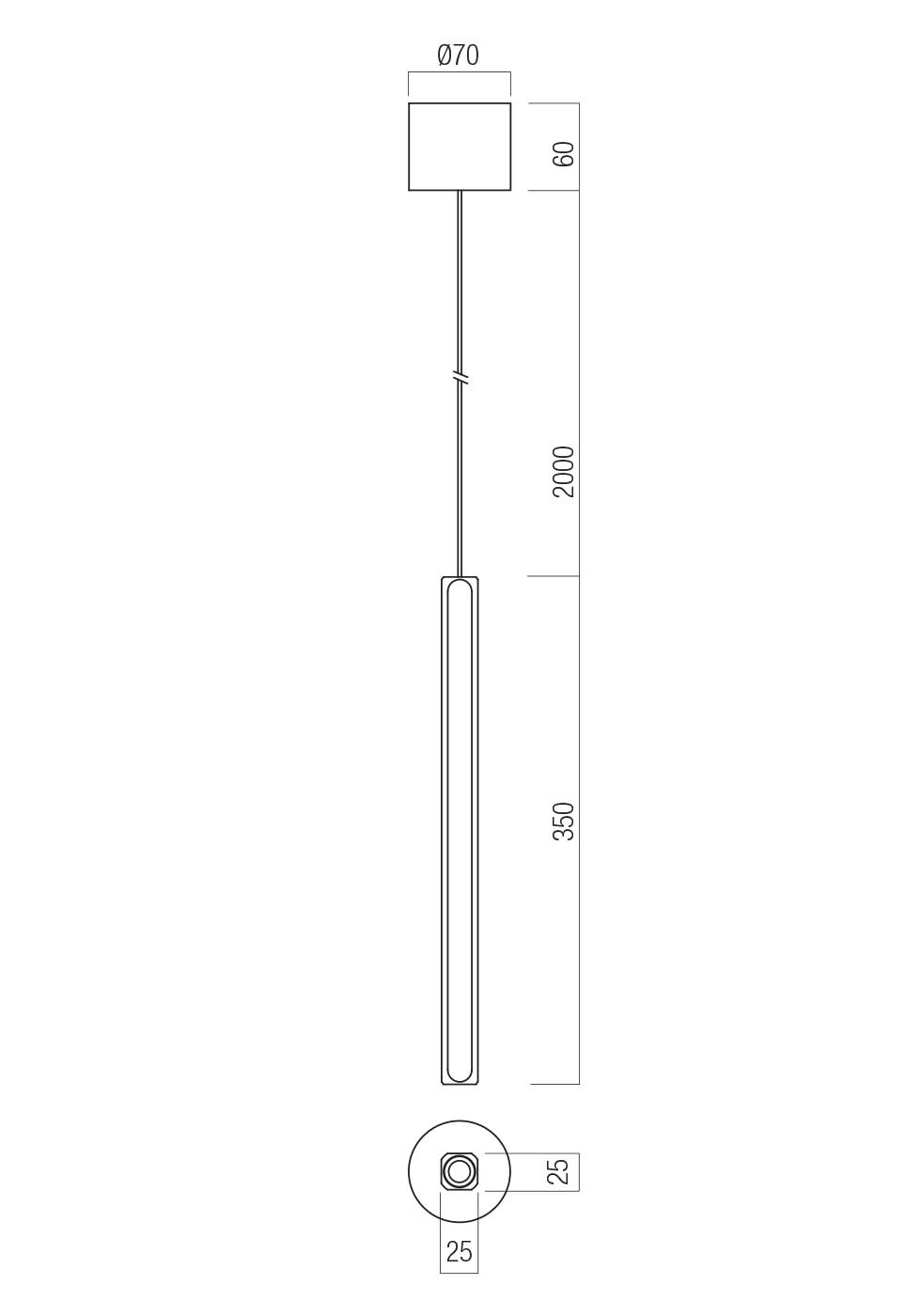 Závěsné interiérové svítidlo vybavené COB LED diodami, kovová a extrudovaná hliníková konstrukce s broušenou hnědou povrchovou úpravou, difuzor z průhledného skla. Svítilna je TRIAC stmívatelná.