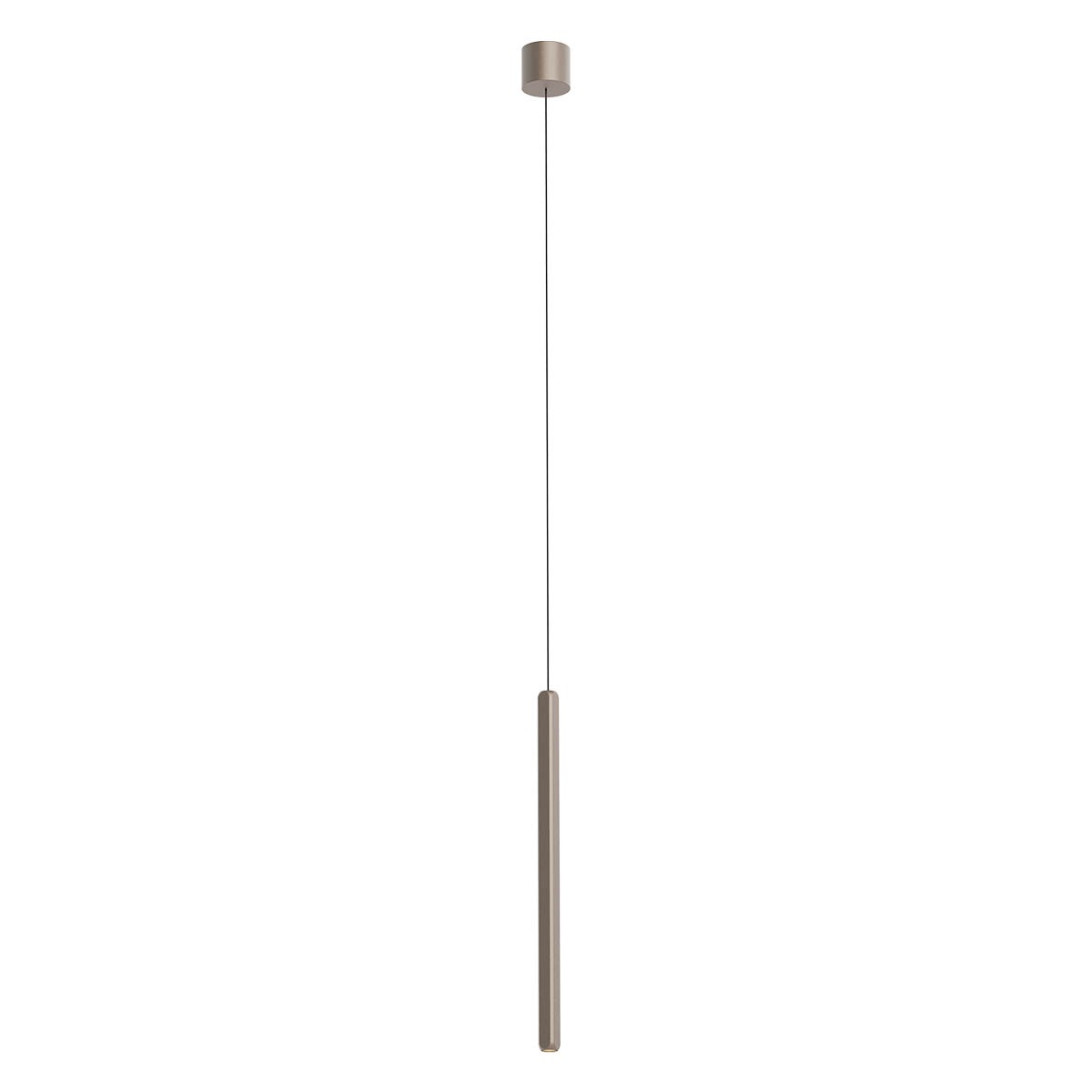 Závěsné interiérové svítidlo vybavené COB LED diodami, kovová a extrudovaná hliníková konstrukce natřená stříbrno-kávovou barvou, difuzor z průhledného skla. Svítilna je TRIAC stmívatelná.