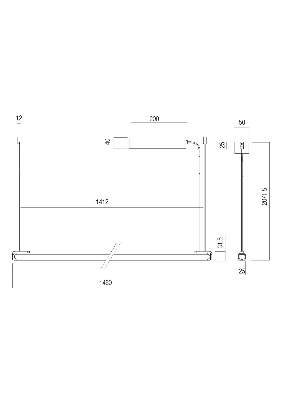 Závěsné interiérové svítidlo vybavené SMD LED diodami, kovová a extrudovaná hliníková konstrukce natřená pískově černou barvou, difuzor z průhledného skla. Svítilna je TRIAC stmívatelná.