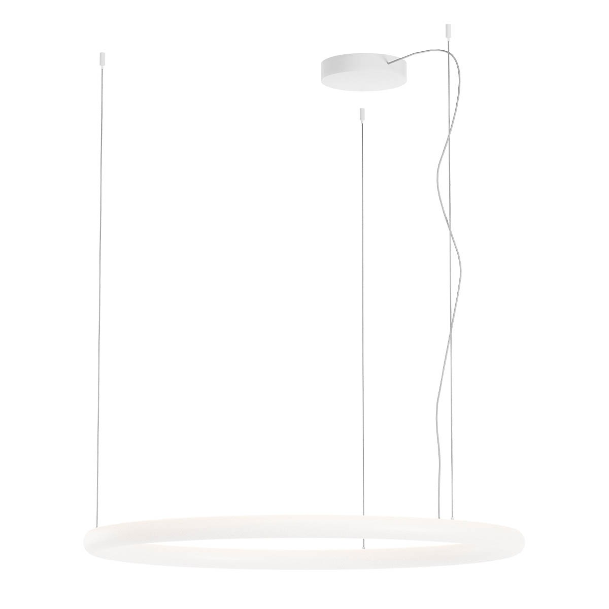 Závěsné svítidlo pro interiér vybavené LED diodami SMD s možností změny teploty barvy, struktura z kovu v pískové bílé barvě, opálově bílý akrylový difuzor. Svítilna je stmívatelná TRIAC stmívačem.