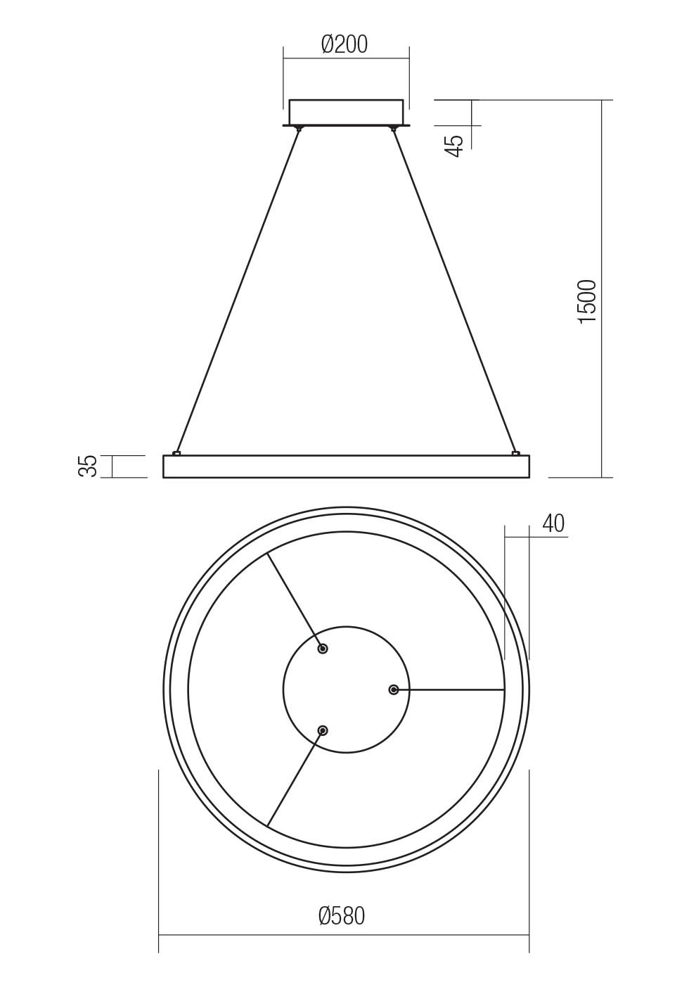 Závěsné interiérové svítidlo vybavené SMD LED diodami, možnost stmívání a ovládání teploty barev od teplé bílé po neutrální bílou. Konstrukce hliníku a kovu lakovaná broušenou černou barvou, opálově bílý akrylový difuzor.