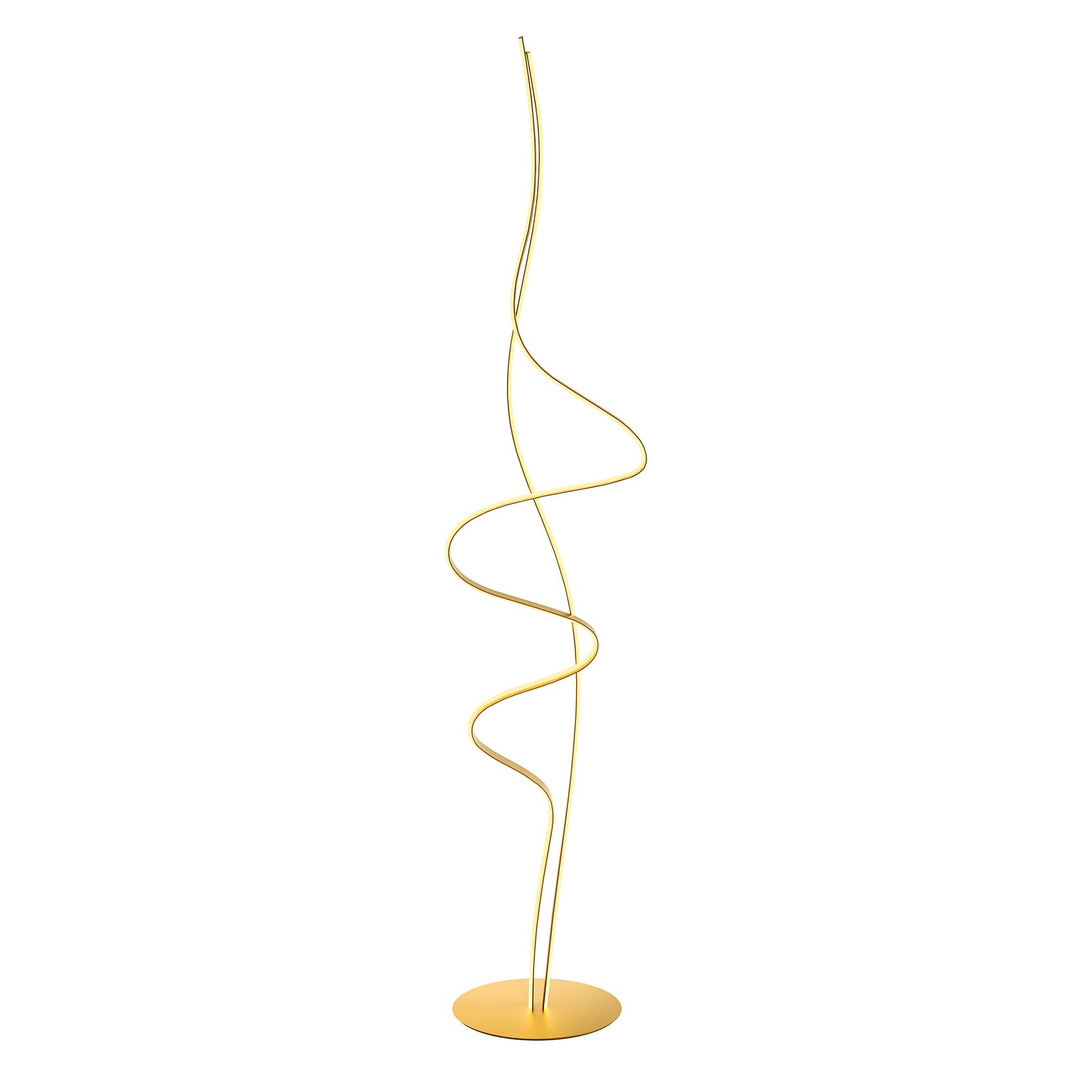 Interiérové stojanové stmívatelné svítidlo vybavené SMD LED diodami, kovová a hliníková konstrukce v matné zlaté barvě, bílý difuzor z PVC.