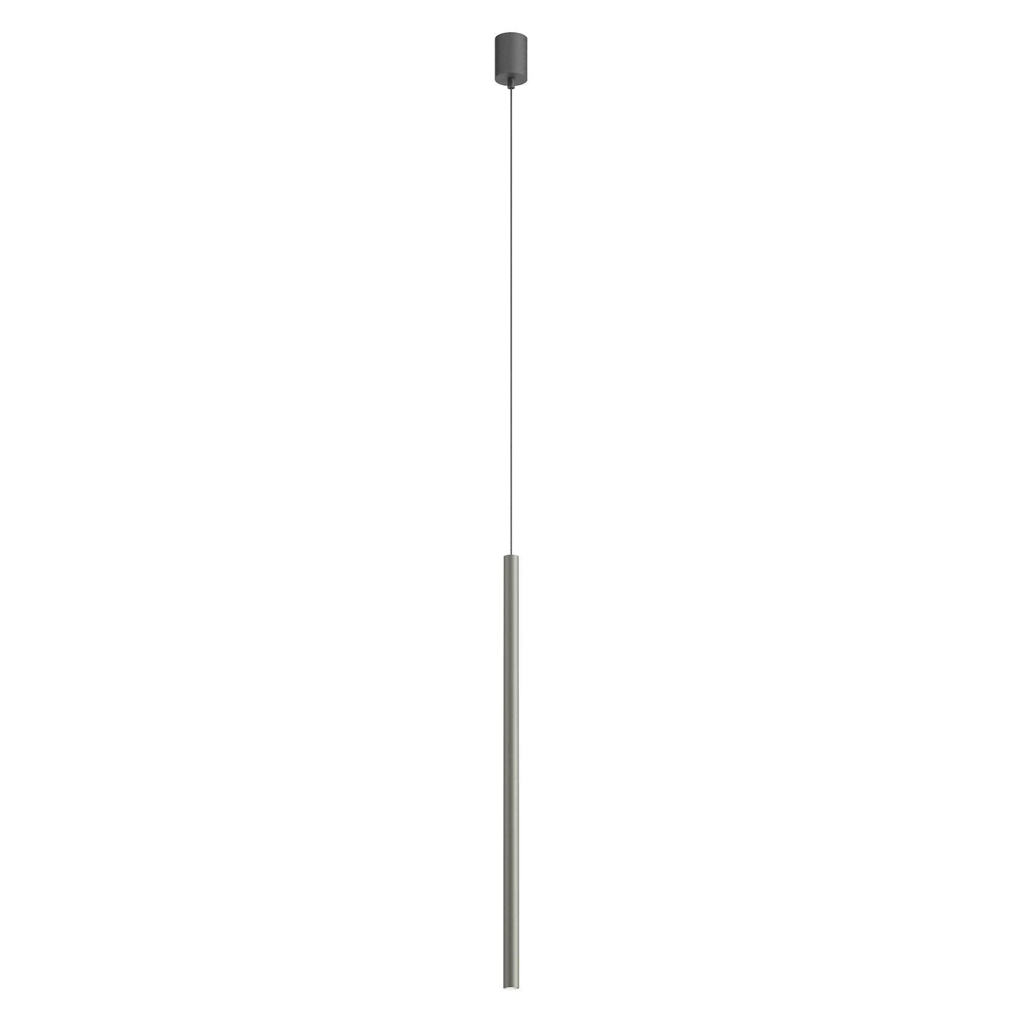 Závěs pro interiér vybavený COB LED, pískově černý lakovaný upevňovací kryt, matné niklové lakované extrudované hliníkové tělo, černý kabel, průhledný polykarbonátový difuzor.