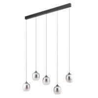 Závěsné stmívatelné svítidlo do interiéru, vybavené SMD LED diodami, kovová konstrukce s pískovou černou barvou, kouřové gradient skleněné difuzory.