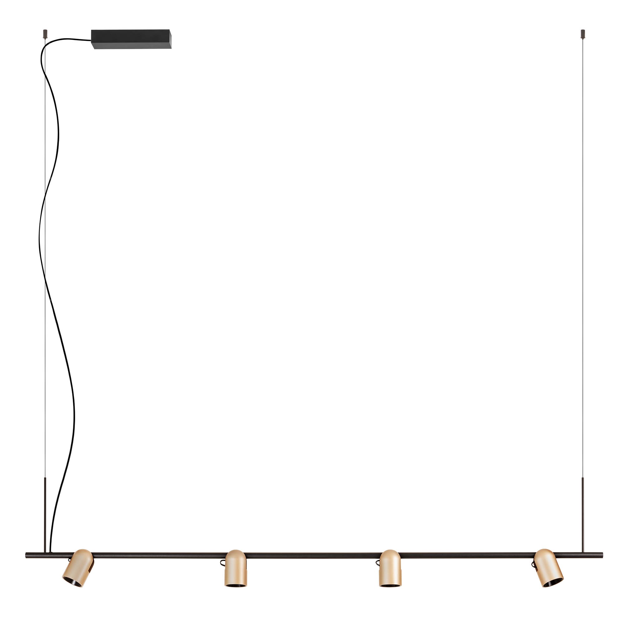 Interiérové závěsné LED stmívatelné svítidlo, extrudovaná hliníková konstrukce lakovaná matnou černou barvou a nastavitelné spoty v barvě stříbrná káva/černá, průhledný polykarbonátový difuzor.