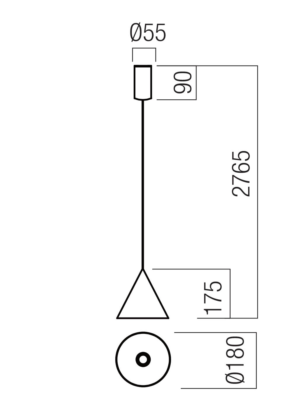 Závěsné svítidlo pro interiér s COB LED diodou, stmívatelné pomocí TRIAC. Hliníková konstrukce a hliníkový difuzor lakovaný v matné černé barvě.
