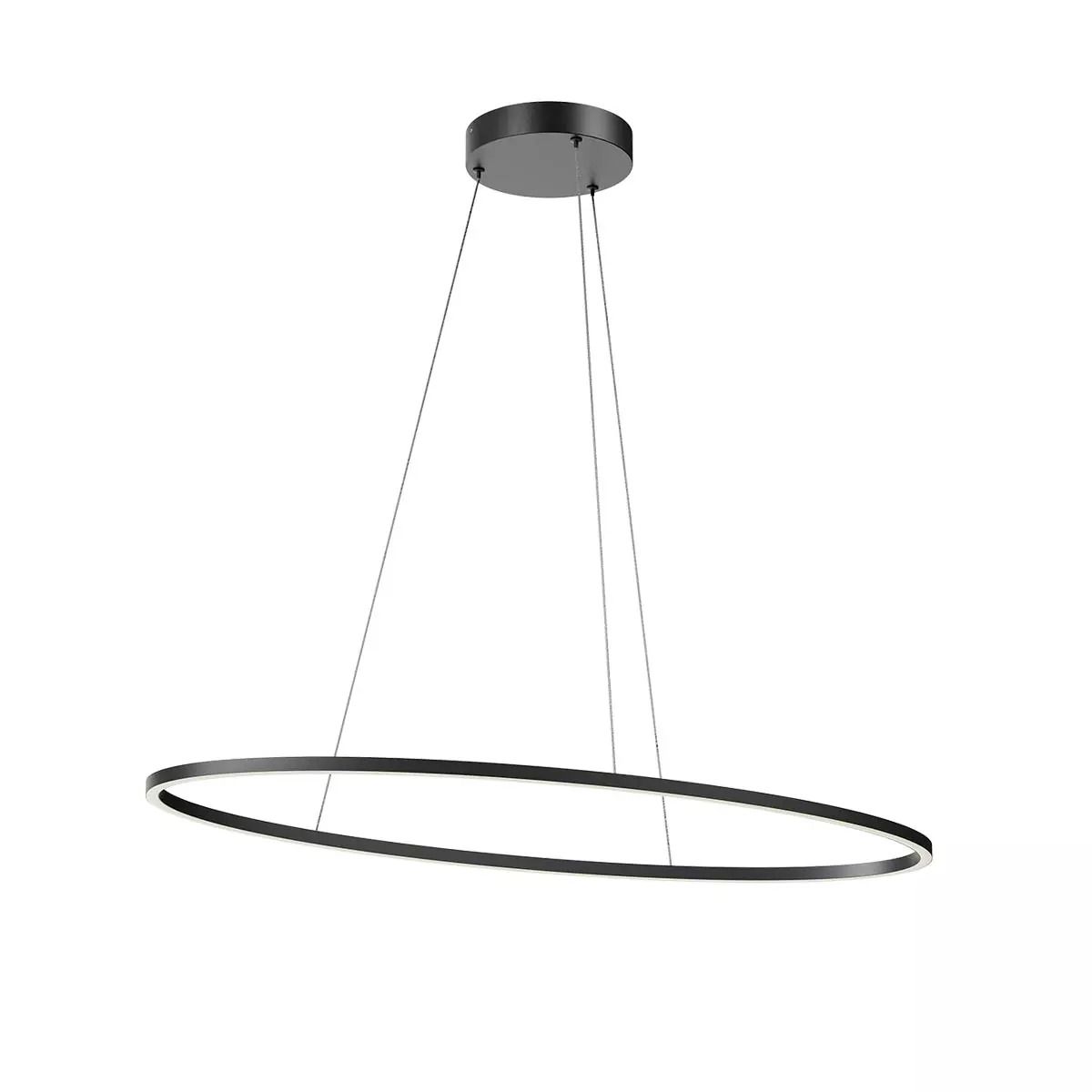 Závěsné interiérové svítidlo vybavené SMD LED diodami, s možností volby teploty barvy světla. Konstrukce hliníku a kovu lakovaná broušenou černou barvou, matný bílý difuzor z PVC.
