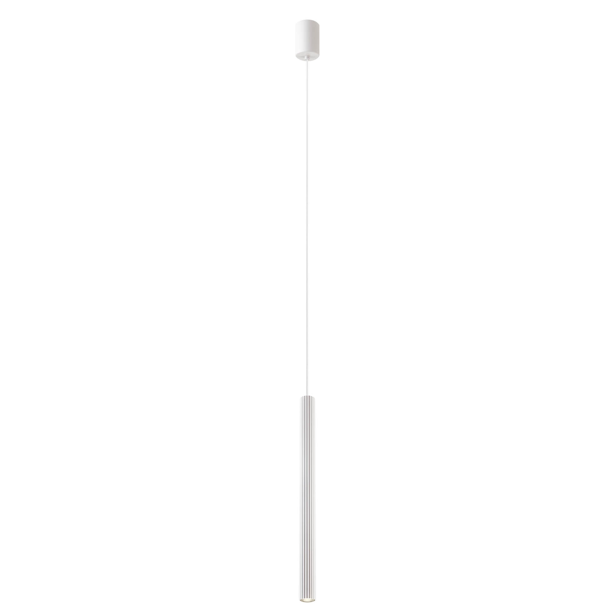 Interiérová závěsná LED svítilna vyrobená z kovu lakovaného v barvě matná bílá, průhledný polykarbonátový difuzor.