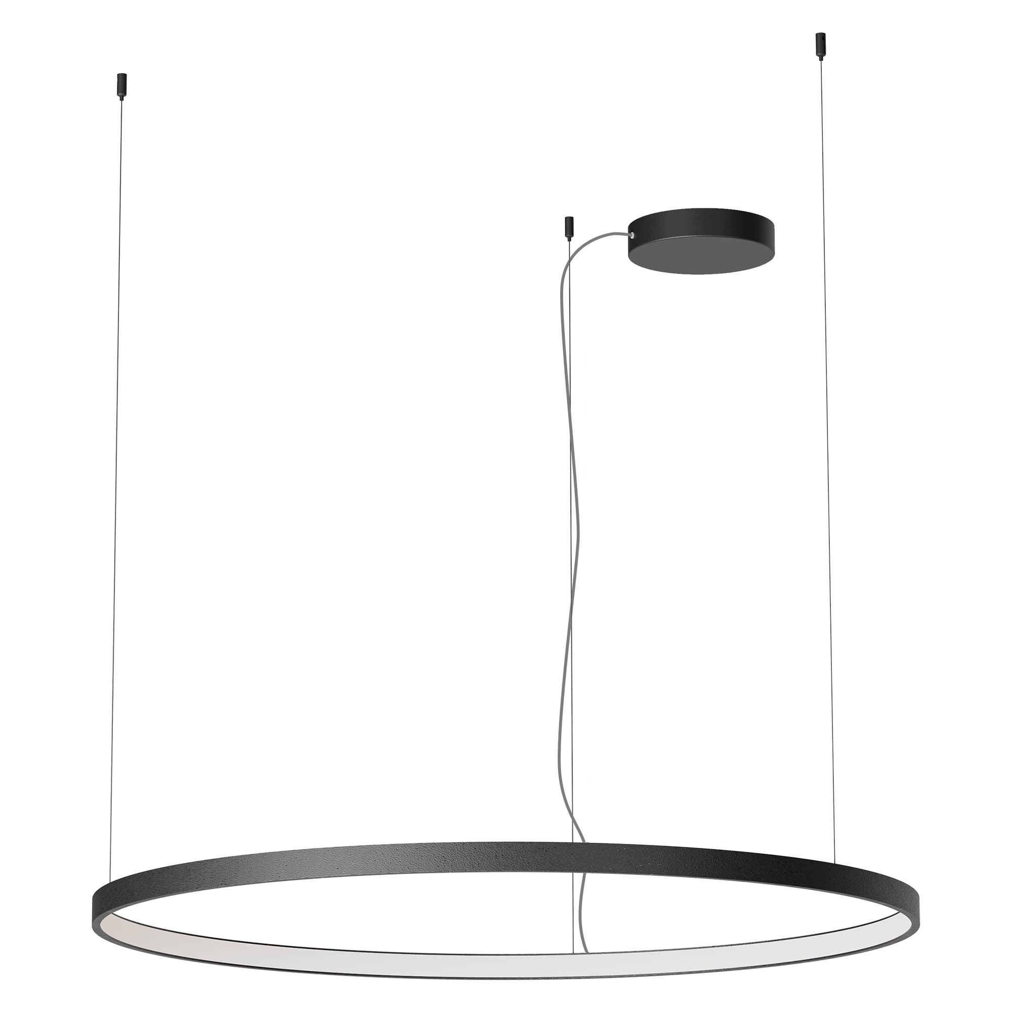 Závěsné interiérové svítidlo vybavené SMD LED diodami s možností stmívání TRIAC stmívačem a ovládání teploty barev od teplé bílé po neutrální bílou. Konstrukce hliníku a kovu lakovaná pískovou černou barvou, difuzor v bílém opálovém silikonu.