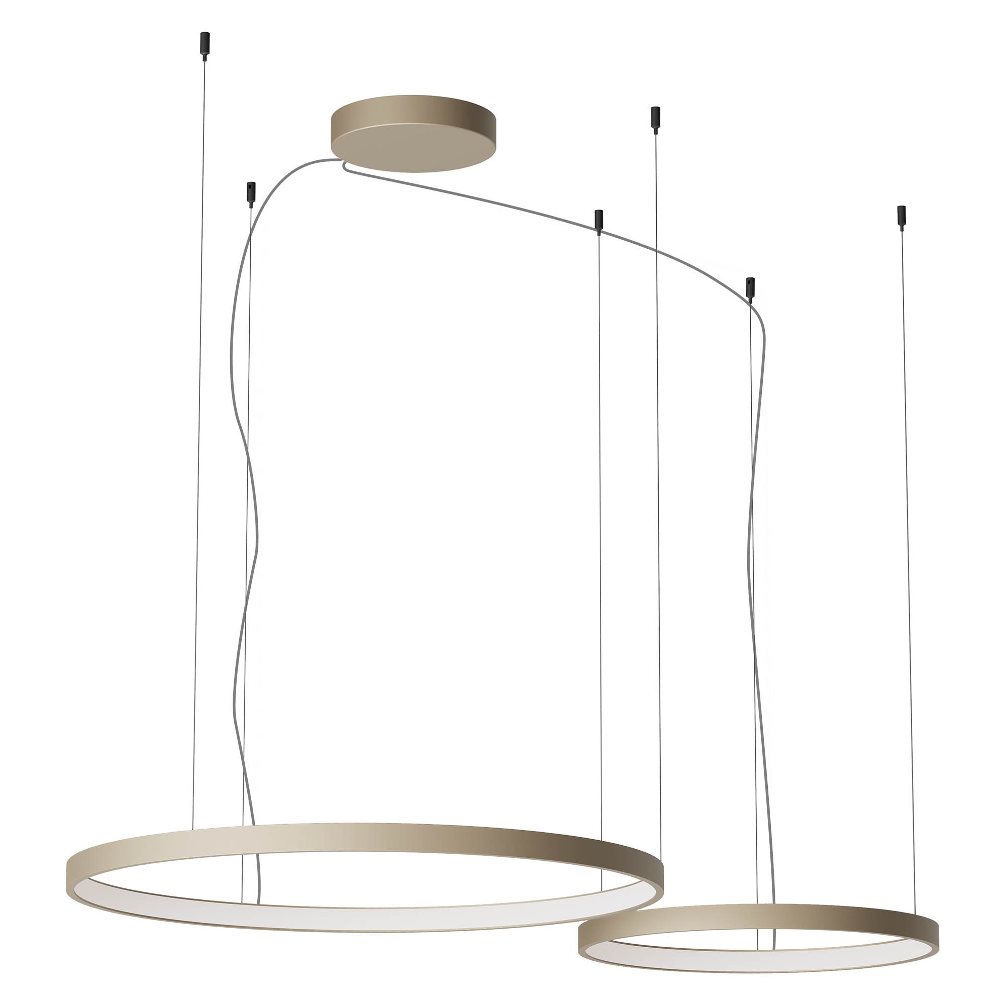Závěsné interiérové svítidlo vybavené SMD LED diodami s možností stmívání TRIAC stmívačem a ovládání teploty barev od teplé bílé po neutrální bílou. Konstrukce hliníku a kovu lakovaná barvou stříbrná káva, difuzor v bílém opálovém silikonu.