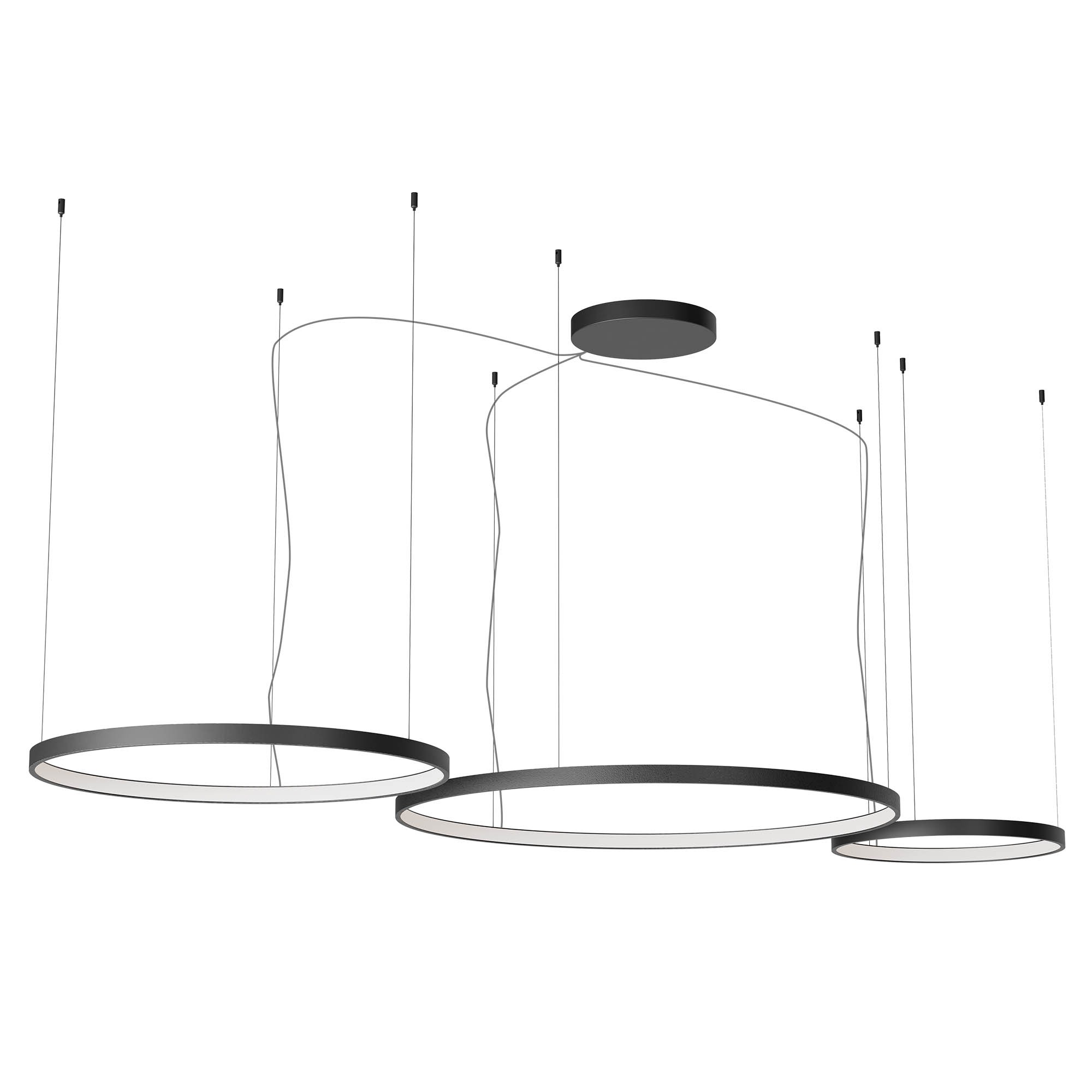 Závěsné interiérové svítidlo vybavené SMD LED diodami s možností stmívání DALI stmívačem a ovládání teploty barev od teplé bílé po neutrální bílou. Konstrukce hliníku a kovu lakovaná pískovou černou barvou, difuzor v bílém opálovém silikonu.